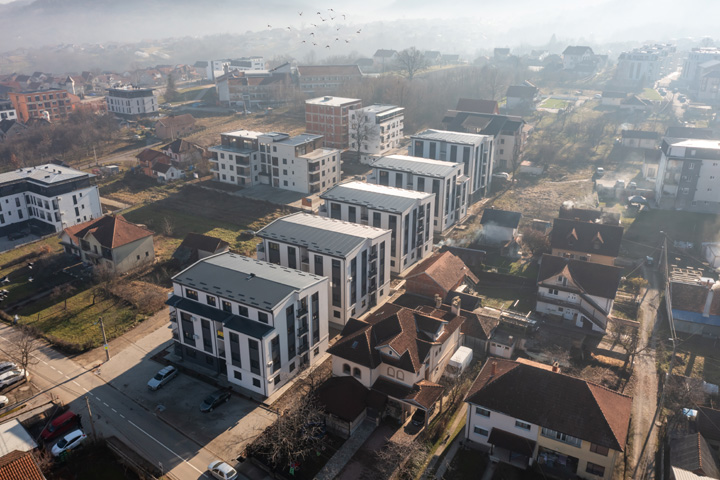 Bas preko puta AKVA PARKA, naselje koje se sastoji od 5 stambenih zgrada, sa obezbedjenim parking mestom, uredjenim zelenilom nudi vam komfor, mir i uzivanje. Kvadrature se krecu od 34,35,38,43m2 svaki sa odvojenom spavacom sobom, terasom, dnevnim boravkom i kuhinjom.